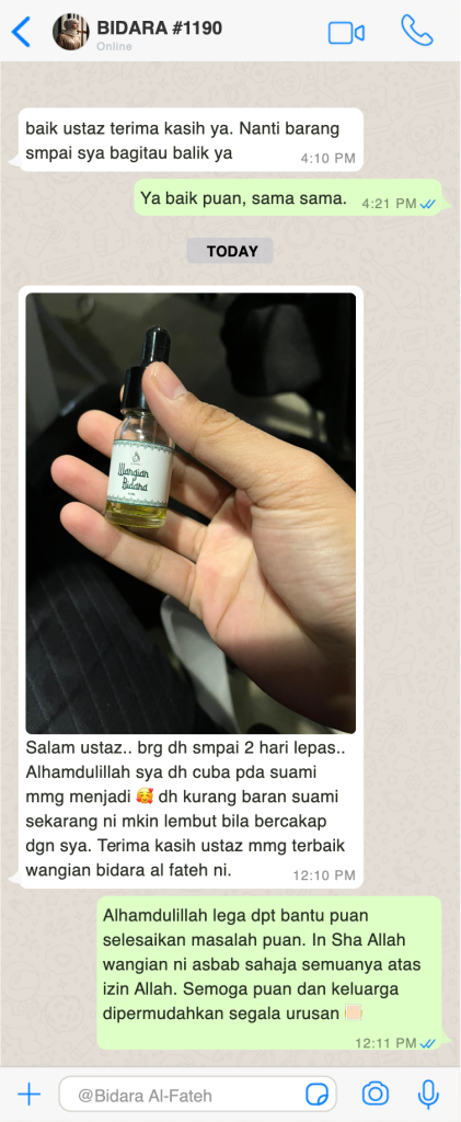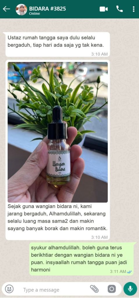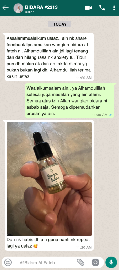 semua pelanggan yang pernah ikhtiar dengan Wangian Bidara Al-Fateh mesti puas hati dengan aroma serta kualiti wangian kami.